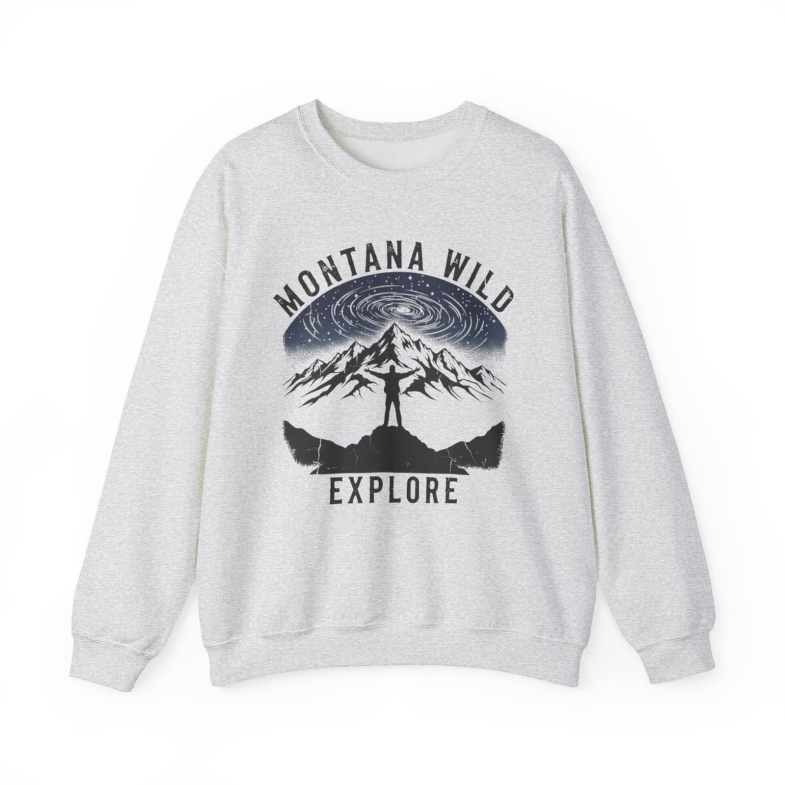 A cozy, lived-in sweatshirt that carries the call of the wild. Soft but substantial midweight fabric wraps you in warmth while a vintage-style Montana mountain graphic and lone hiker silhouette spark memories of early-morning trails, starry nights, and standing on ridgelines with cold air in your lungs. The classic crew cut and clean lines make it easy to layer over tees or under a shell. Durable stitching and premium knit keep this piece ready for repeat wear on weekend drives, campsite slow mornings, or quiet evenings by the fire.
