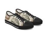 Made with breathable polyester canvas and featuring hi-poly deodorant memory foam insoles, these women’s low top sneakers bear all the marks of an awesome shoe. Choose between black or white sole and laces, and enjoy the silver metal eyelets along with the lace-up closure. Add your designs and bring a bespoke staple to life.